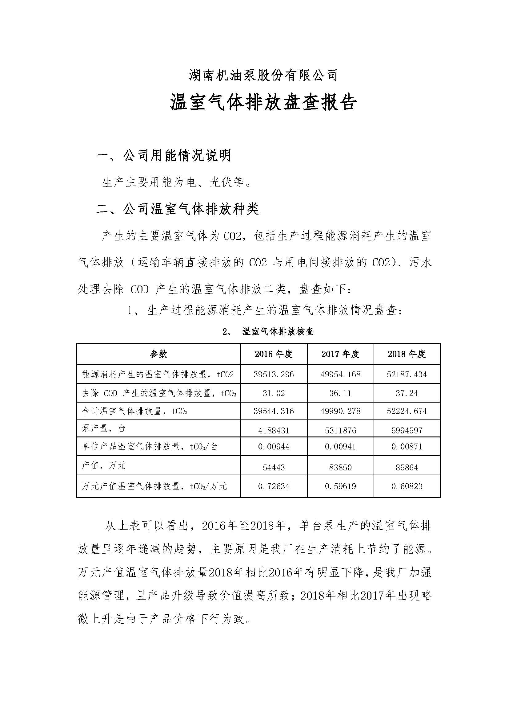 湖南機油泵股份有限公司 溫室氣體核查報告